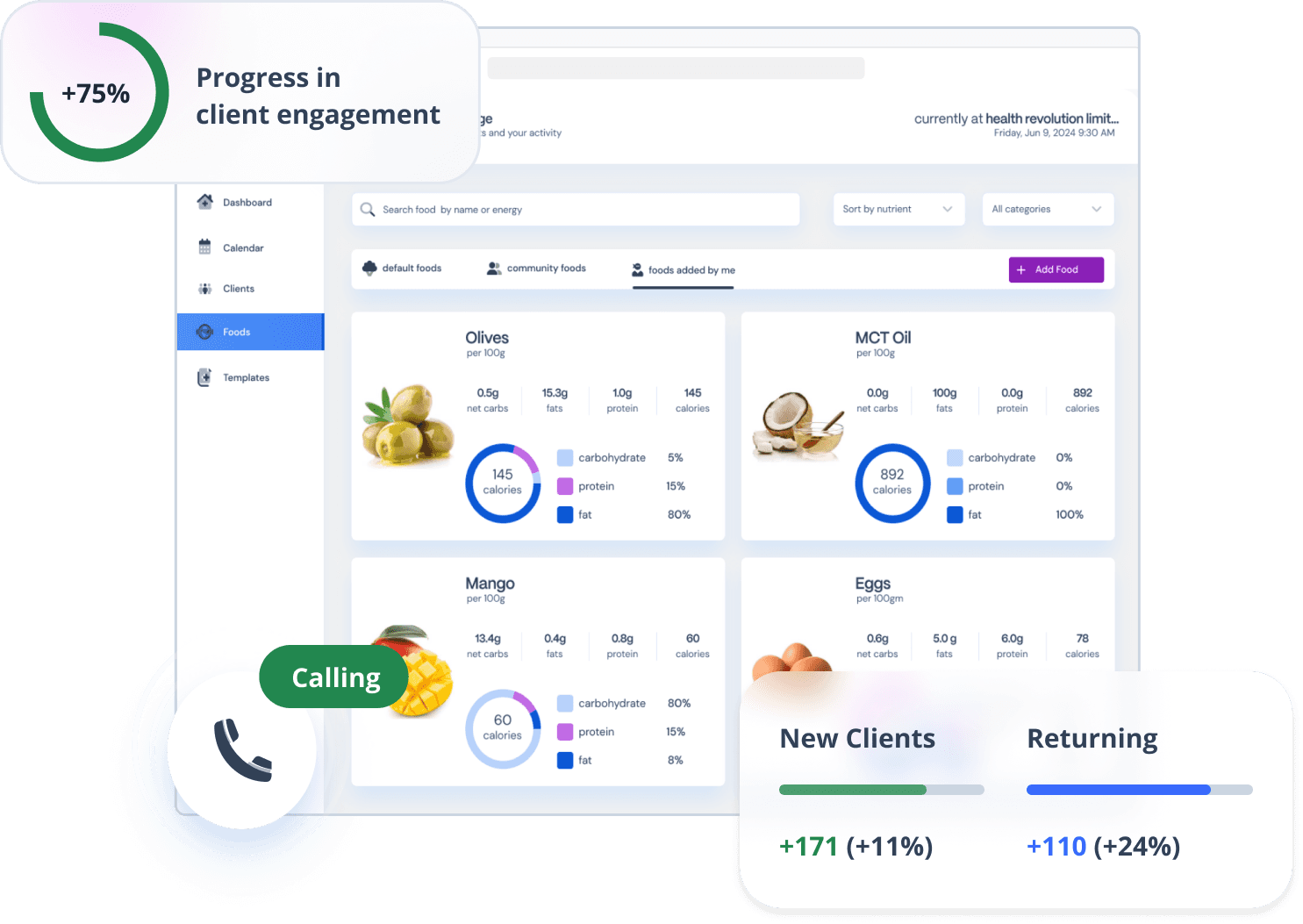 Nutritionists can manage appointments, follow-ups, and communications seamlessly, optimising both client